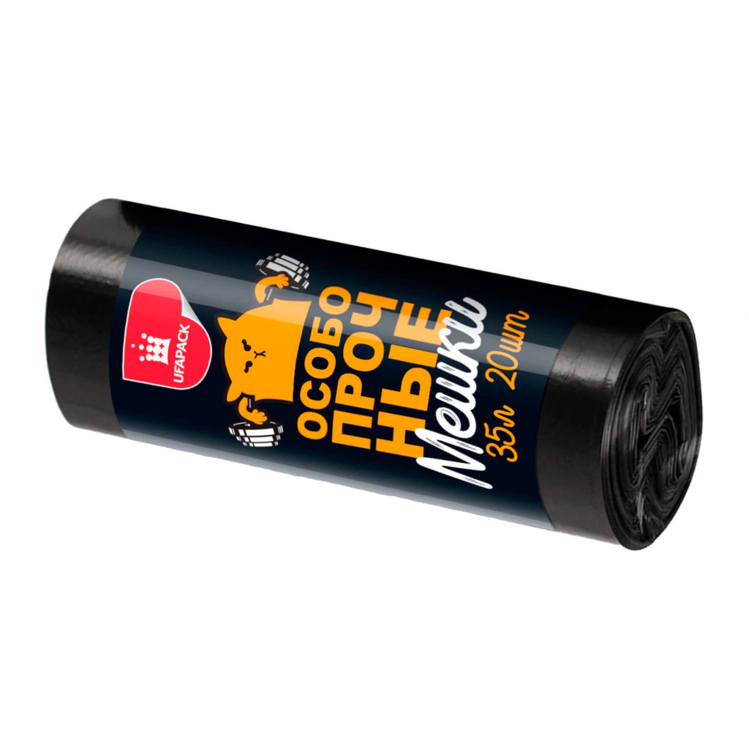 Мешки для мусора 35 л, черные, в рулоне 20 шт., ПНД, 12 мкм, 600х500 мм, Особопрочные, МП7788