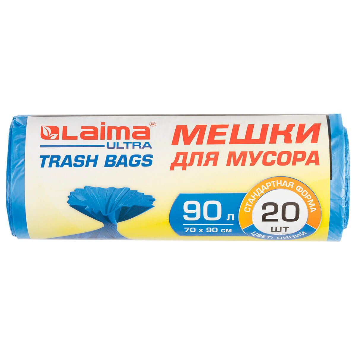 Мешки для мусора 90 л, синие, в рулоне 20 шт., ПНД, 14 мкм, 900х700 мм, LAIMA ULTRA, 607693