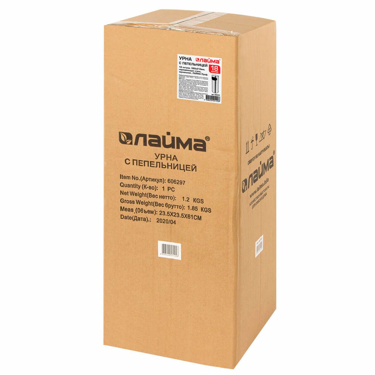 Урна с пепельницей 18 литров, нержавеющая сталь, зеркальная, LAIMA PROFESSIONAL в Качканаре