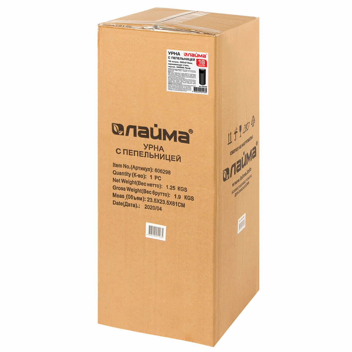 Урна с пепельницей 18 литров, нержавеющая сталь, черная, LAIMA PROFESSIONAL в Качканаре